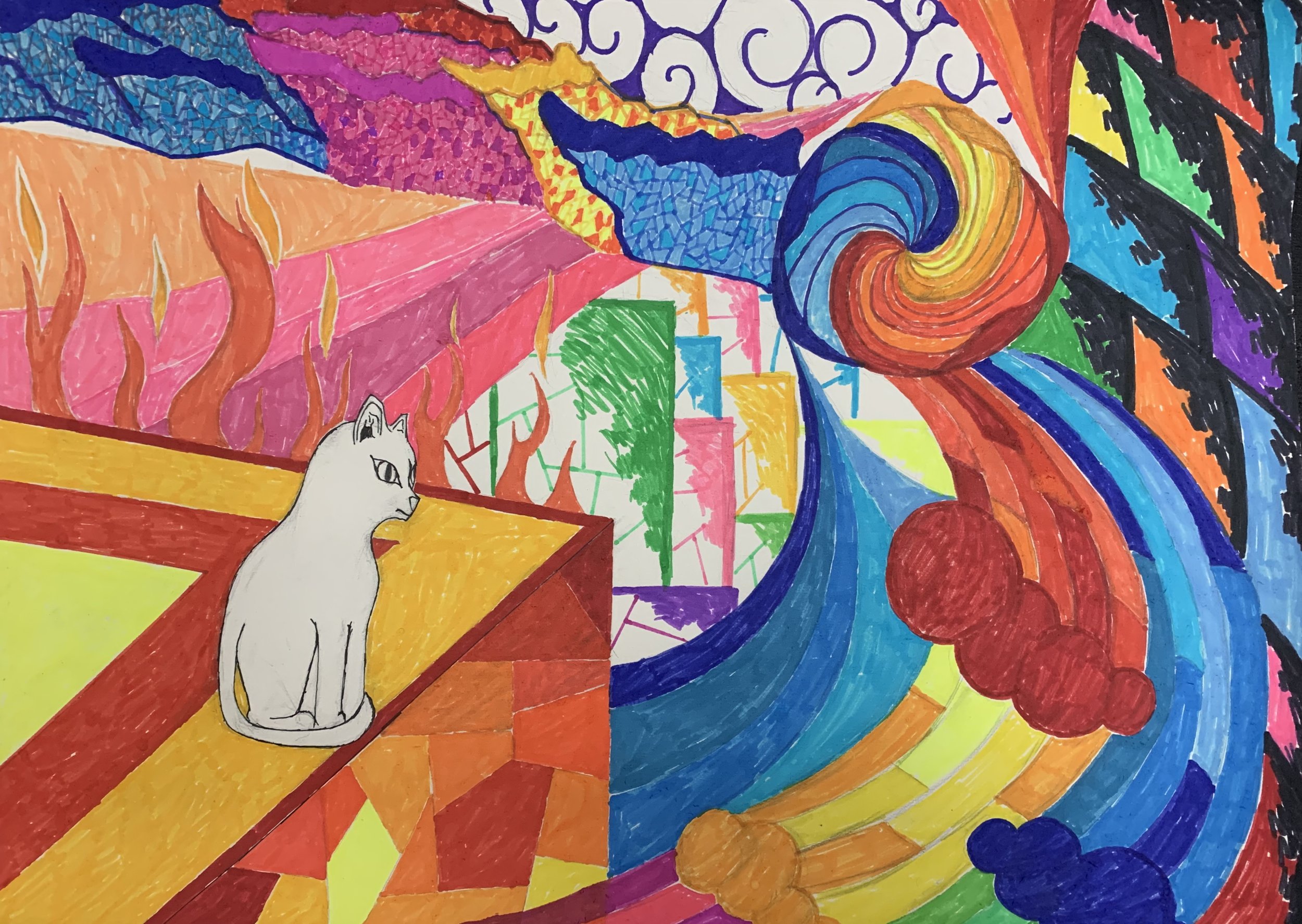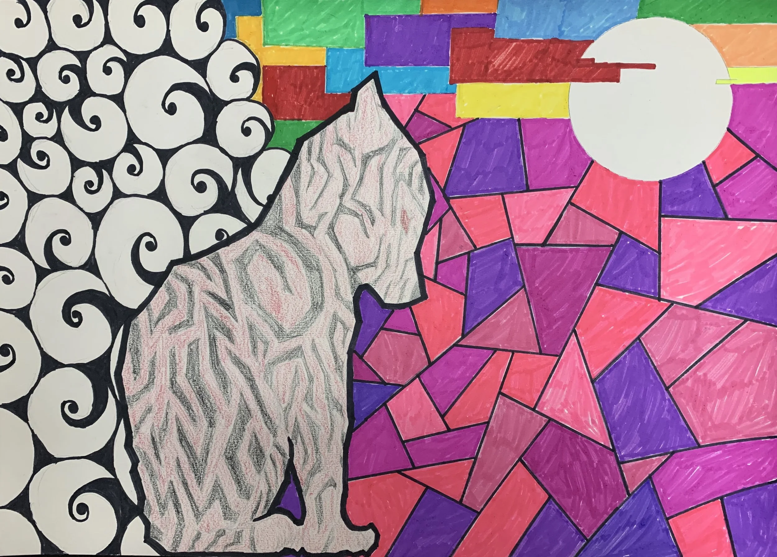 Papercut, charcoal, ink, and watercolor on paper
